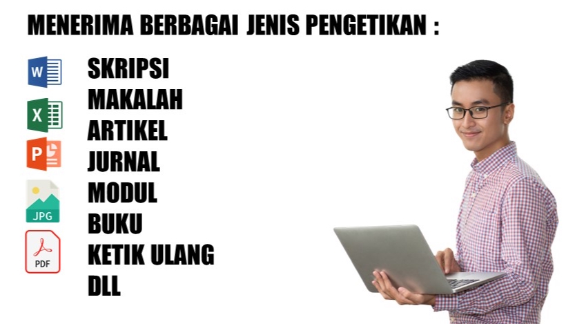 Menerima jasa pengetikan berupa tulisan, tabel dll, Serta Pembuatan Artikel, Skripsi, Makalah, gambar baik dalam bentuk JPG, PNG, PDF ke Word, input Data dan Mengolah Data Excel, Visio maupun Power Point. Konsumen menjelaskan detail pekerjaan. Harga dapat berubah-ubah tergantung dari padat tidaknya tulisan. Langkah Pekerjaan Untuk Pengetikan Express, 1 Hari Jadi - [Bisa Bayar Bertahap - Kualitas Pekerjaan Terjamin] 1. buyer Menyerahkan Data Pendukung untuk pengetikan 2. Menentukan harga dan Deadline waktu 3. Lapor Hasil pekerjaan dan Revisi 4. Selesai, Review dan Rating Langkah Pekerjaan 1. Buyer Menyerahkan Data Pendukung untuk pengetikan 2. Menentukan harga dan Deadline waktu 3. Lapor Hasil pekerjaan dan Revisi 4. Selesai, Review dan Rating