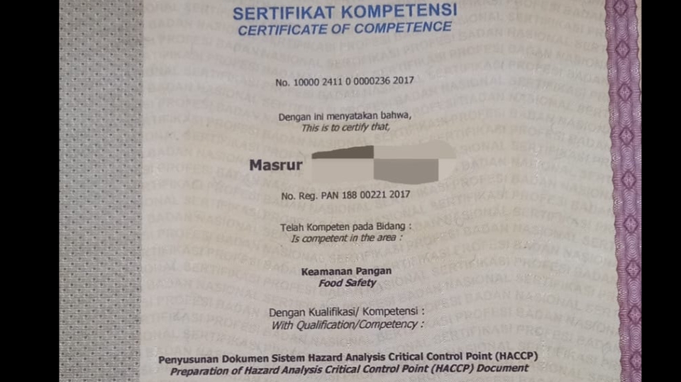 Saya lulusan Food and Agricultural Product and Technology, memiliki sertifikat kompetensi bidang Preparation HACCP dan sejak 2018 saya bekerja di industri FnB yang bergelut di bidang quality dan quality system.