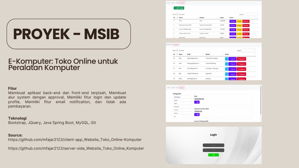 Pengembangan Website Profesional dengan Bootstrap, jQuery, dan Spring Boot / Express.js / PHP