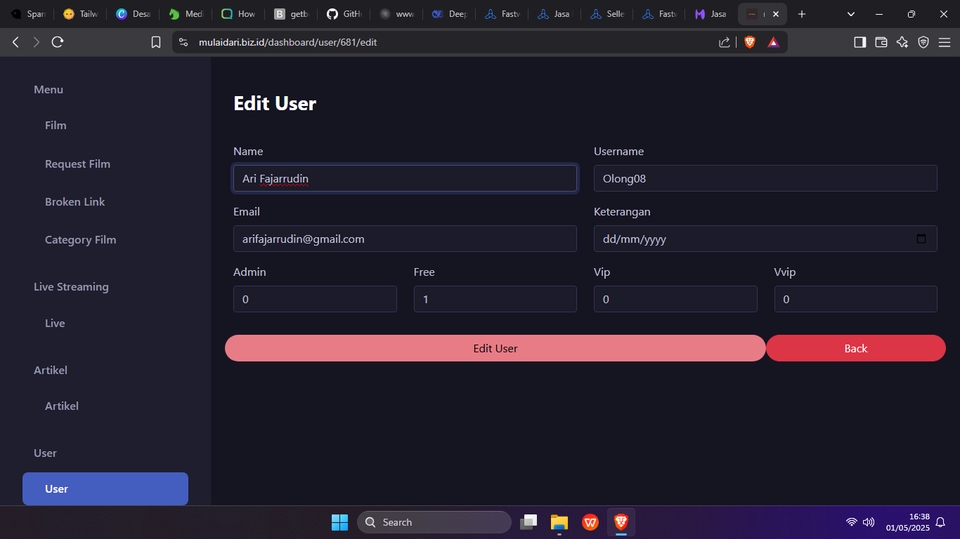 Nikmati kemudahan membuat website dengan layanan Jasa Pembuatan Website dari saya Website siap digunakan langsung online! Mengapa Harus SayaSaya berpengalaman membuat website dari 2020 hingga sekarang, selain coding saya juga ahli dibidang desain dan bahasa jepang. Dapatkan jasa pembuatan website dengan harga murah dan hasil yang berkualitas. Saya membuat web dengan coding yang responsif, user-friendly, dan modern. Saya berkomitmen untuk membantu mengembangkan bisnis Anda di dunia digital dengan harga super murah. Kami juga menyediakan banyak layanan dengan harga termurah. Saya akan memberikan Anda layanan Garansi Selamanya. Pentingnya punya Website Terbaik untuk Bisnis! Di era digital, mencari informasi produk & jasa sudah biasa dilakukan melalui internet. Bisnis yang memiliki website akan lebih mudah ditemukan oleh konsumen, karena website ibarat sebuah toko/kantor online yang dapat melayani pelanggan selama 24 jam. Bisnis Anda butuh website yang profesional? Saya Siap Landing Page Company Profile Website Custom dll Langkah Pekerjaan 1. Informasikan kebutuhan website yang akan dibuat dengan lengkap 2. Jika Ada desain page yang akan dijadikan referensi silakan berikan informasi tersebut 3. Kirim konten / copywriting yang akan ditampilkan 4. Tahap pengerjaan Website & Revisi sesui kuota paket 5. Pengajuan hasil pekerjaan website ke fastwork (oleh freelance) 6. Selesai