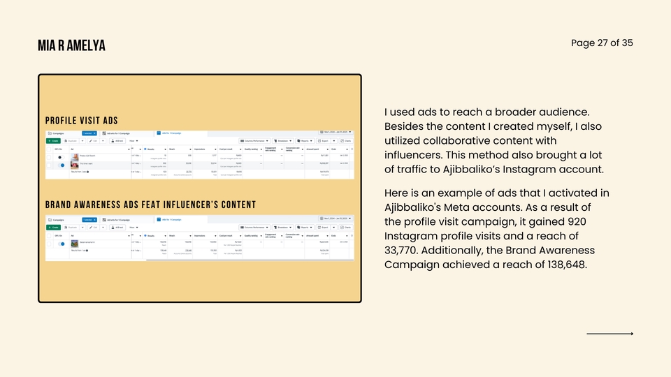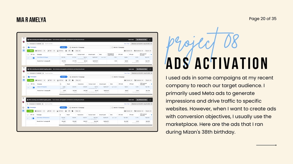 - • Memantau aktivitas media sosial dan performa kampanye iklan secara konsisten.