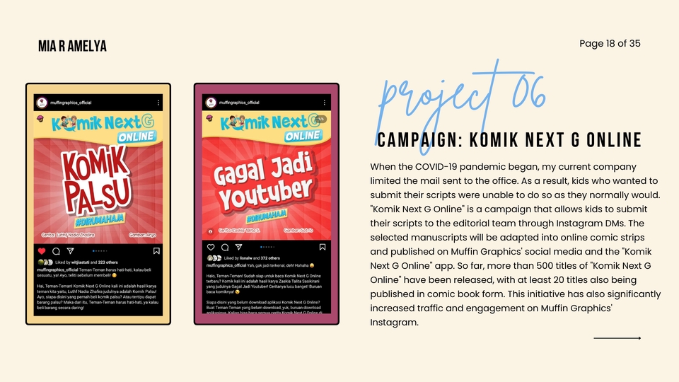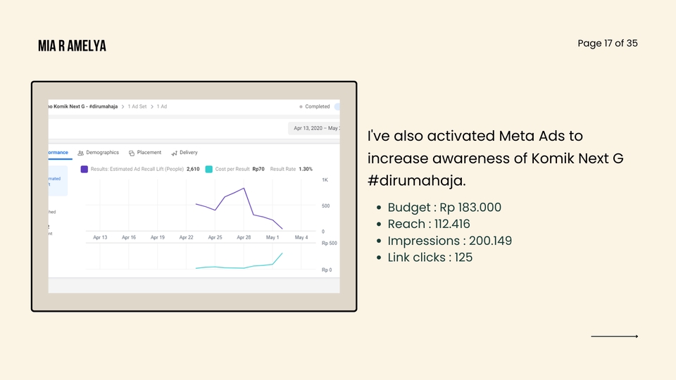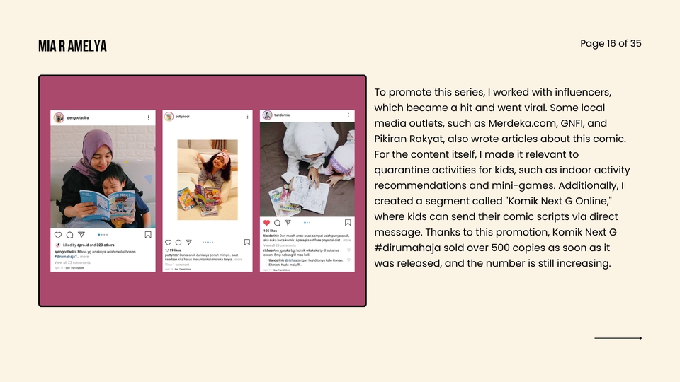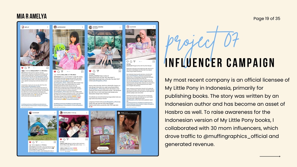 Hi! I'm Mia Rizqi Amelya and I'm a digital marketing specialist. I've worked for 5 years as a social media specialist and have experience as a license manager for 2 years in my recent company. I started my career as a social media specialist at one of the book publishers in Bandung.