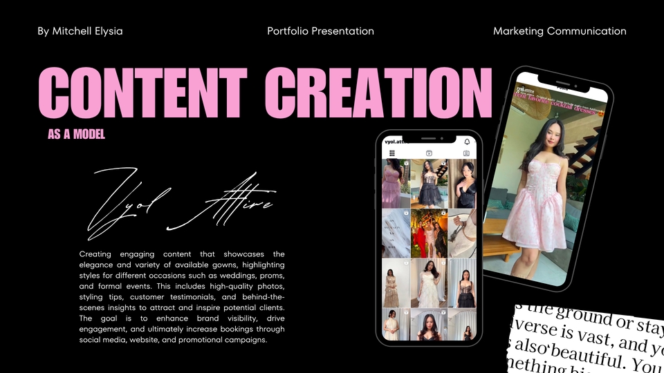 Hi! I'm Mitchell Elysia, a Communication graduate with experience in content creation, social media, and public speaking. I help brands grow through engaging visuals, authentic storytelling, and strategic communication. Let’s work together to bring your ideas to life!