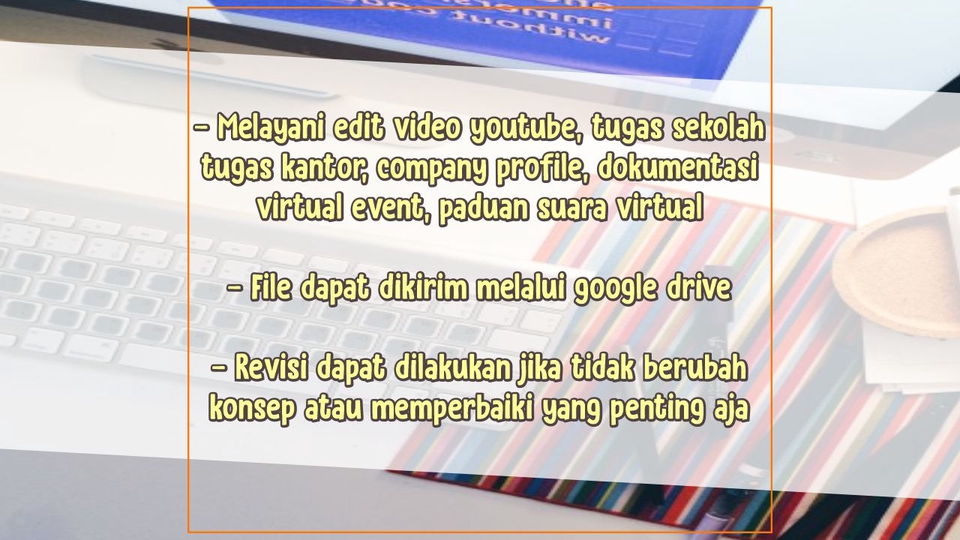 Mempunyai pengalaman dalam mengerjakan editing video terutama video untuk youtube. Tepat waktu dan displin dalam mengerjakan editing video.