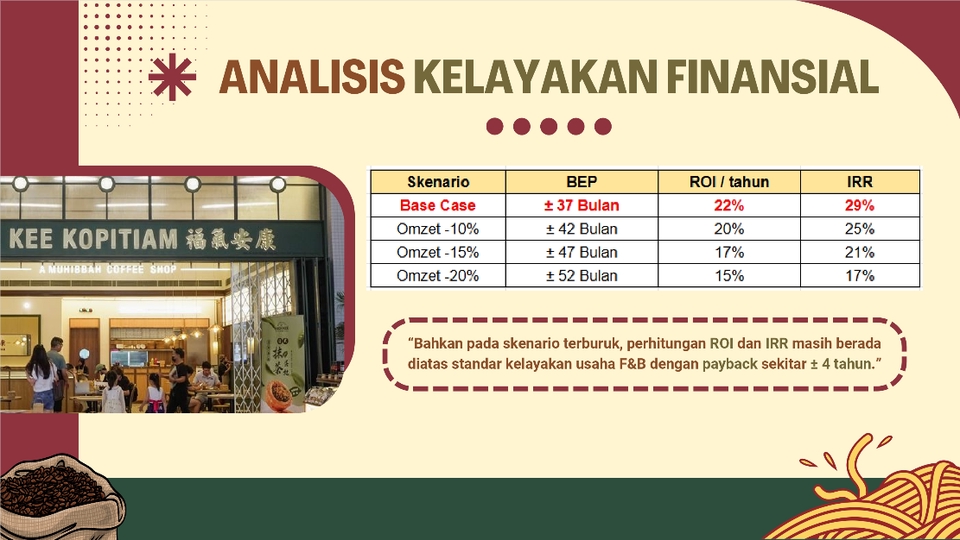 - • Kesimpulan kelayakan bisnis yang berkaitan dengan aspek tersebut