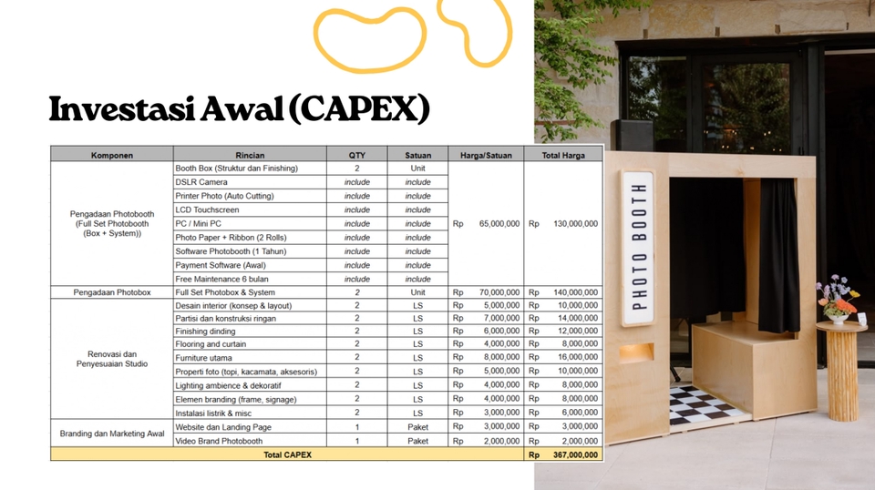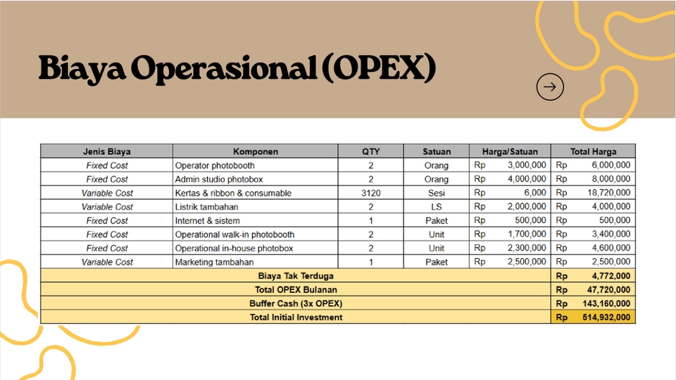 Rp500,0 rbAnalisis 3 aspek (pasar, teknis, finansial) Pengerjaan dilakukan dalam 5-7 hari. *Jika ada request tambahan atau perubahan di aspek yang dibutuhkan boleh dikonsultasikan