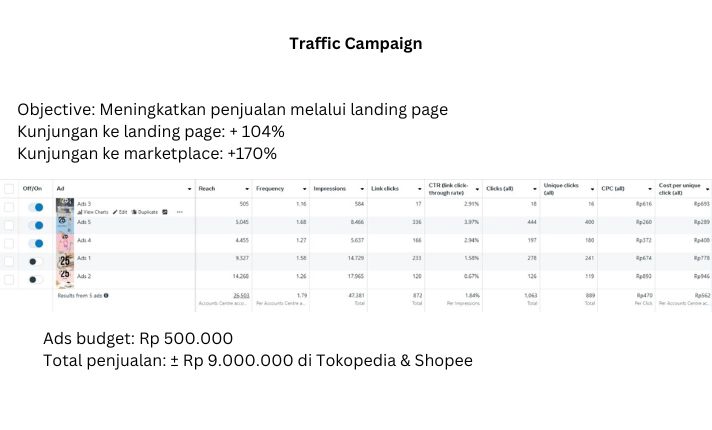Bingung dengan setup meta/facebook ads untuk bisnis kamu? Sudah menjalankan tapi belum ada leads/sales yang memuaskan? Atau, tidak ada waktu untuk handle facebook/meta ads untuk bisnis kamu? Perkenalkan, saya Luqman, punya 2+ tahun pengalaman di bidang digital marketing. Spesialisasi saya adalah handle meta ads dengan total 20+ brand yang sudah ditangani. Berpengalaman bekerja di creative agency dan in house digital marketing team suatu brand. Dengan pengalaman yang saya miliki, saya siap membantu bisnis anda untuk mencapai objektif yang diinginkan. Saya menawarkan layanan: 1. Konsultasi untuk memulai beriklan 2. Setup campaign, optimize, dan reporting 3. Riset audiens dan kompetitor 4. Retargeting/Custom Audience Saya juga memiliki layanan dengan biaya tambahan seperti: 1. Setup fb pixel di website 2. Pembuatan landing page (basic landing page) 3. Pembuatan design iklan 4. CPAS ads Mohon untuk menjadi perhatian bersama: 1. Biaya belum termasuk biaya iklan dari client 2. Website dan produk anda juga menjadi faktor keberhasilan dari ads yang dijalankan Hubungi saya lebih lanjut untuk custom order pengerjaan bulanan. Terima kasih! Langkah Pekerjaan 1. Initial brief 2. Pemberian akses akun untuk kegiatan ads 3. Setup ads 4. Optimasi