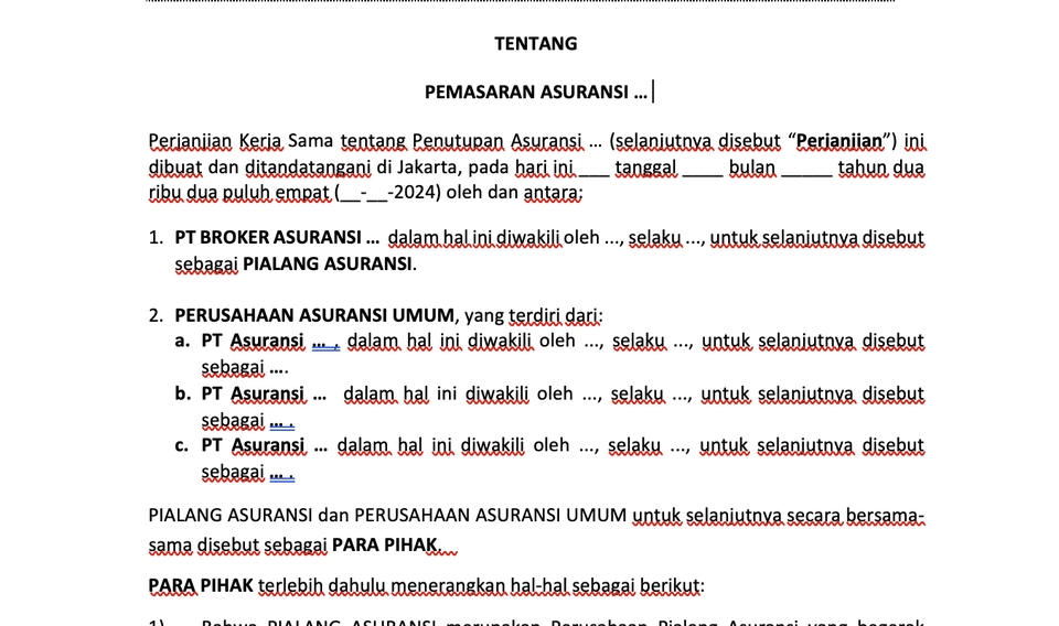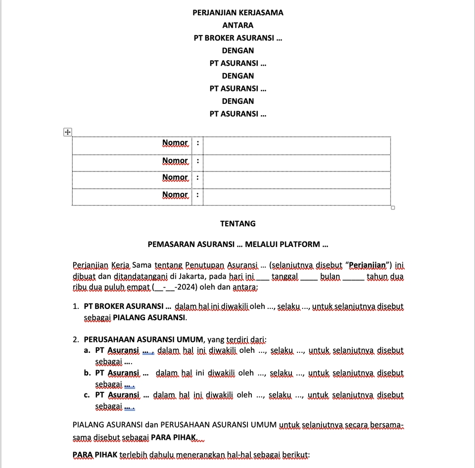Draft Perjanjian Kerjasama Antara Broker Asuransi dan Perusahaan Asuransi