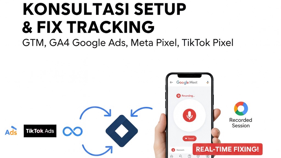 Tracking yang akurat adalah dasar iklan yang efektif. Tanpa data yang tepat, optimasi gagal dan biaya iklan terbuang. Layanan ini membantu Anda memperbaiki dan mengoptimalkan setup tracking di semua platform secara cepat dan tepat. Konsultasi dilakukan online melalui Google Meet dan langsung fokus pada masalah Anda: event tidak terbaca, purchase tidak muncul, parameter hilang, atau struktur GTM yang berantakan. Anda cukup share screen, dan solusi diberikan saat itu juga. Saya berpengalaman menangani Google Tag Manager, Google Ads Conversion, Meta Pixel + CAPI, TikTok Pixel, GA4, serta sistem e-commerce dan donasi. Tujuan sesi: memastikan data kembali akurat dan siap untuk scaling iklan. Tersedia opsi rekaman untuk dipelajari ulang atau dibagikan ke tim. Cocok untuk pemilik bisnis, media buyer, developer, dan agency yang butuh tracking rapi tanpa trial-and-error.