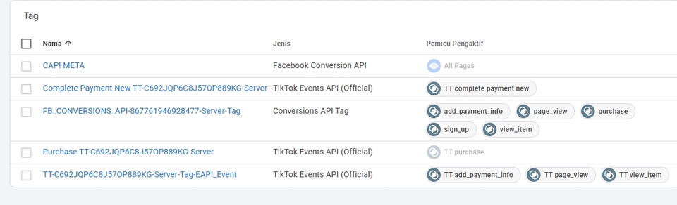 Rp250,0 rbDurasi: 60 Menit (Per Jam) Setup GTM Server-Side Container Konfigurasi Meta CAPI (Conversion API) atau TikTok Events API. Termasuk Rekaman Sesi. Note: Butuh akses server/hosting/stape jika diperlukan.