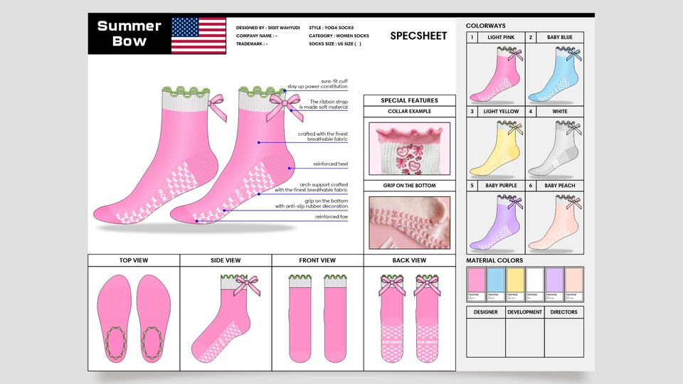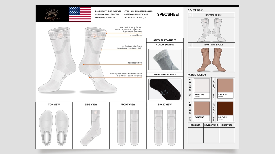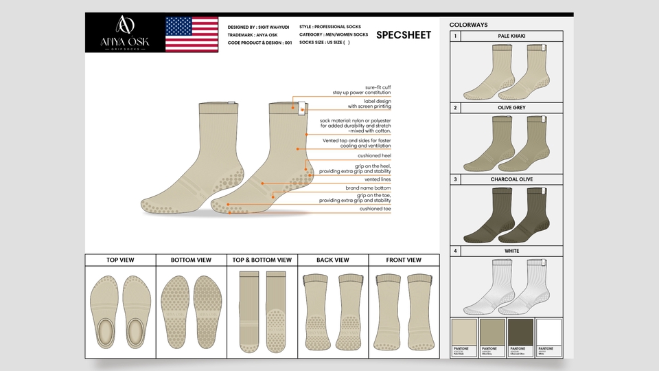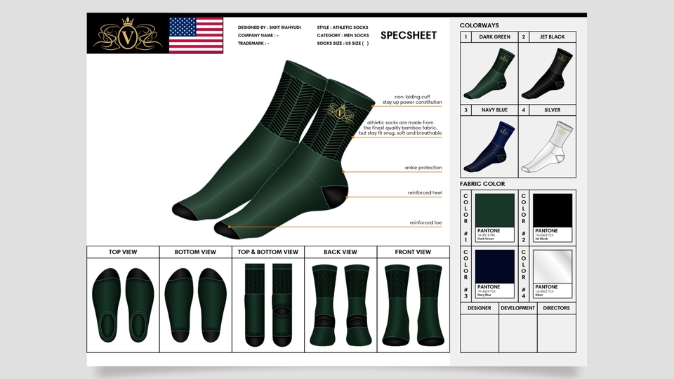 Rp300,0 rbKonsep Desain Kaos Kaki dan Sarung Tangan Tampilan 4 Sisi Bagian + Spesifikasi Detail Material + 6 Pilihan Warna + Detail Desain.