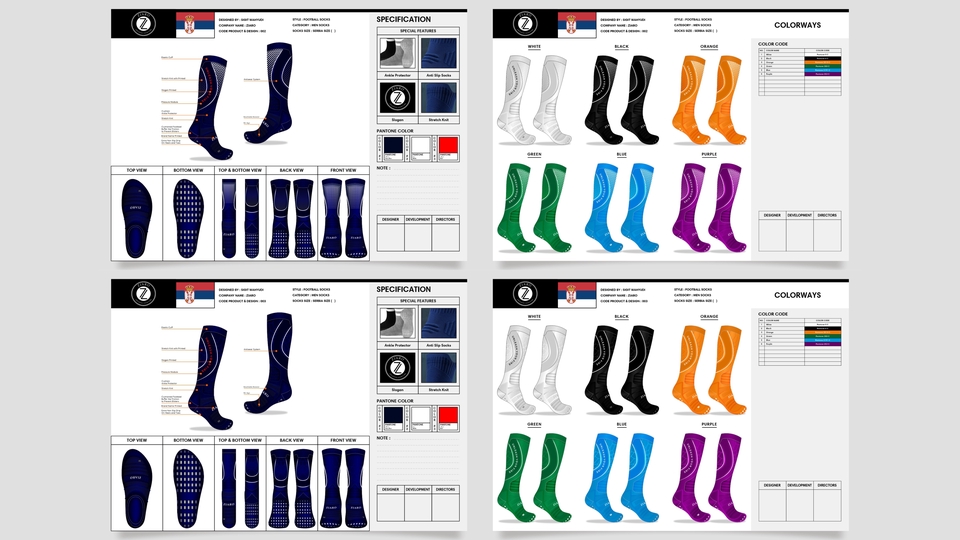 Rp150,0 rbKonsep Desain Kaos Kaki (Samping, Bawah) dan Sarung Tangan (Atas + Bawah) + Spesifikasi Detail Material + 4 Pilihan Warna.