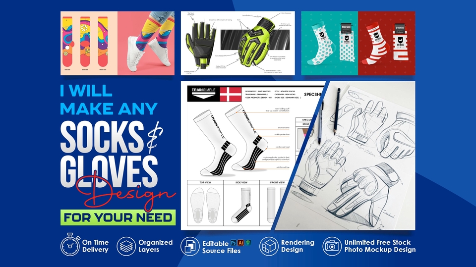 Selamat datang di Proyek Desain Kaos Kaki dan Desain Sarung Tangan Custom dan Kreatif saya. Saya akan mendesain desain kaos kaki dan sarung tangan Custom dan Kreatif untuk Anda atau perusahaan Anda. Beri tahu saya merek dan ide Anda atau jelaskan apa yang Anda cari. Saya di sini untuk mendesain apa yang Anda pikirkan. Saya mengerjakan semua jenis pola/desain kaos kaki dan sarung tangan seperti crew socks, low cut socks, high knee socks, no show socks, kid's socks, athletic socks, rider gloves, safety gloves dan masih banyak lagi. Apa yang akan Anda dapatkan? - File Vector (*.AI), (*.EPS), (*.CDR) | Adobe Illustrator CC, Corel DRAW GS - File Photo (*.PSD), (*.TIFF) | Adobe Photoshop CC - High-Resolution (*.JPG) & (*.PNG) - File Document (*.PDF) - Artwork dan Realistic Mockups - Desain Mockup Action Figure Model - Konsep Desain Kaos Kaki dan Sarung Tangan - Desain Packaging Kaos Kaki dan Sarung Tangan - Desain Hang tag Kaos Kaki dan Sarung Tangan - Spesifikasi Material - Gambar Sketsa/Line Art/Tech Pack - Trendy Silhouette - Saran Warna dan Bahan - Spesifikasi untuk produksi massal di manufaktur - Jaminan Puas Semua desain kaos kaki dan sarung tangan yang saya buat dikembangkan dengan mempertimbangkan "Kemudahan Produksi". Jangan ragu untuk menghubungi saya kapan saja. Langkah Pekerjaan 1. Jika ada, bisakah Anda mengirimkan saya Mood Board dan Ide sesuai keinginan dan kebutuhan Anda. 2. Jelaskan desain yang Anda inginkan, dalam bentuk gambar instruksional, atau gambar dalam pesan. dan komposisi pesanannya. 3. Saya mulai mengerjakan desain sesuai dengan ide kreatif saya, jika tidak ada Mood Board dan Ide atau instruksi gambar dan tulisan dari Anda. 4. Kirimkan logo atau nama merek Anda yang sudah ada pada desain untuk memberikan tampilan yang lebih profesional.