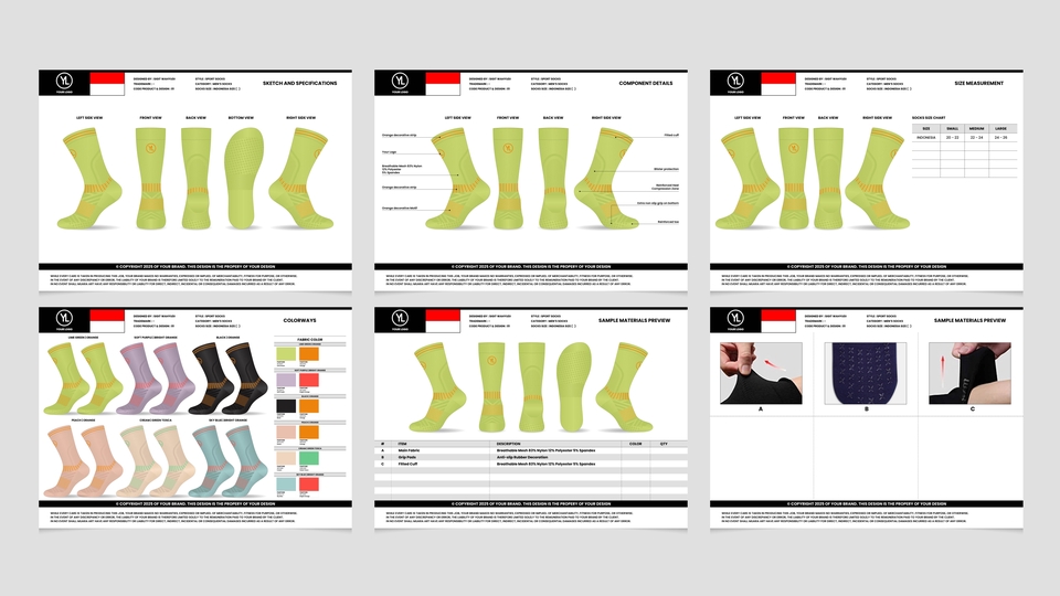 Rp550,0 rbKonsep Desain Kaos Kaki dan Sarung Tangan Tampilan Semua Sisi + Spesifikasi Detail Material + Desain Techpack + 8 Pilihan Warna + Label Design + Detail Desain.