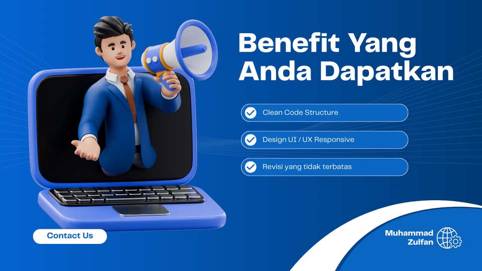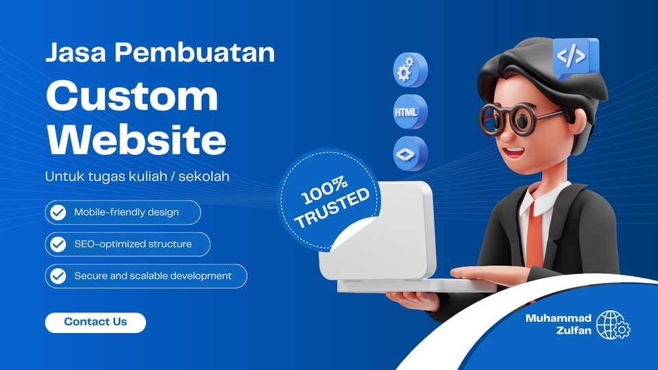 Hai, saya adalah seorang profesional di bidang Website Developer yang menyediakan layanan pembuatan website, pengembangan website, perbaikan website, dll. Let's work together!