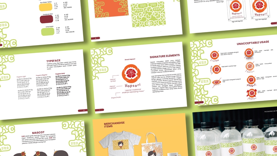 Kami menyediakan jasa penyusunan brand guidelines yang dipersonalisasikan khusus untuk brand anda. Layanan ini menyediakan: 1. Pemilihan color palette 2. Pemilihan typografi 3. Peraturan penggunaan logo 4. Pembuatan supergrafis 5. Pembuatan mockup merchandise 6. Pembuatan mockup web
