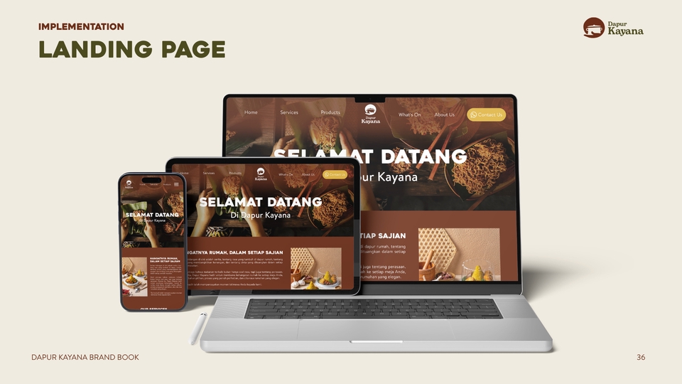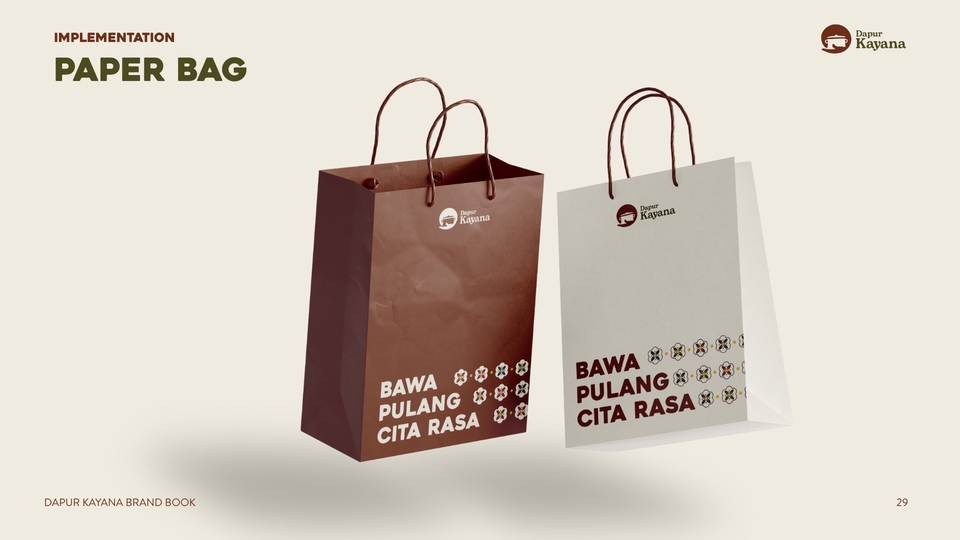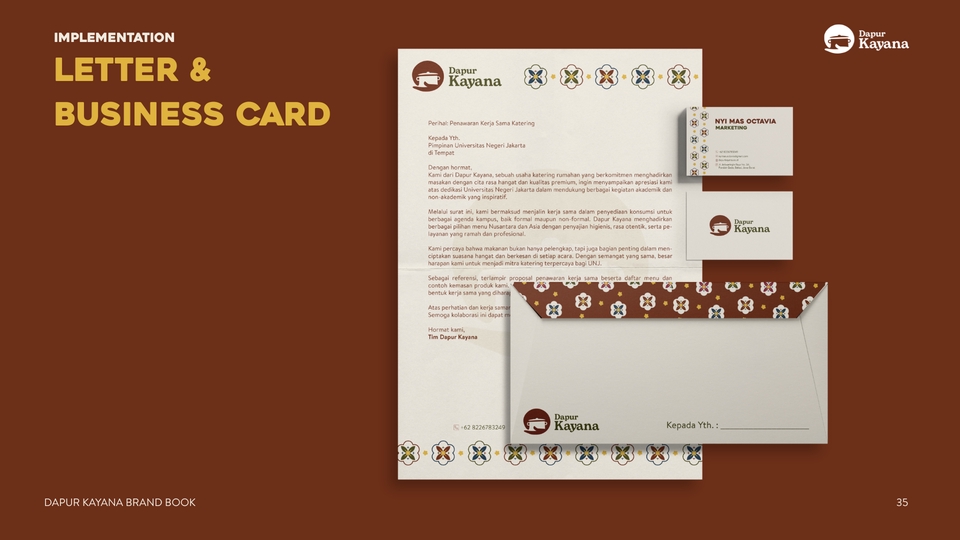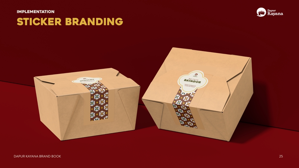 - • Mockup penerapan brand (5 visual: IG feed / banner / packaging / signage)
