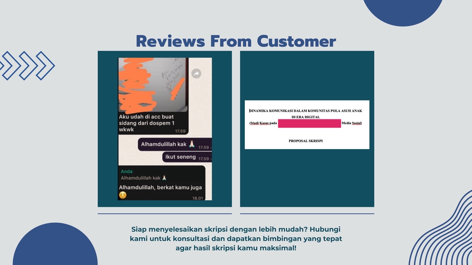 Jasa konsultasi skripsi memberikan dukungan kepada mahasiswa dalam proses penulisan skripsi, mulai dari pemilihan topik hingga penyusunan dan penyuntingan naskah akhir. Tujuannya adalah membantu mahasiswa menghasilkan skripsi berkualitas tinggi yang memenuhi standar akademis. Langkah Pekerjaan 1. Sesi Konsultasi Rutin 2. Pemilihan Topik dan Rumusan Masalah 3. Bimbingan Penelitian 4. Motivasi dan Dukungan Emosional