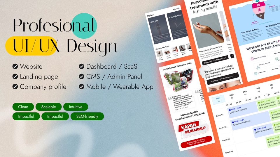 UI/UX, Website, Mobile App, Landing Page, Company Profile, Dashboard, SAAS Design, E-commerce Design