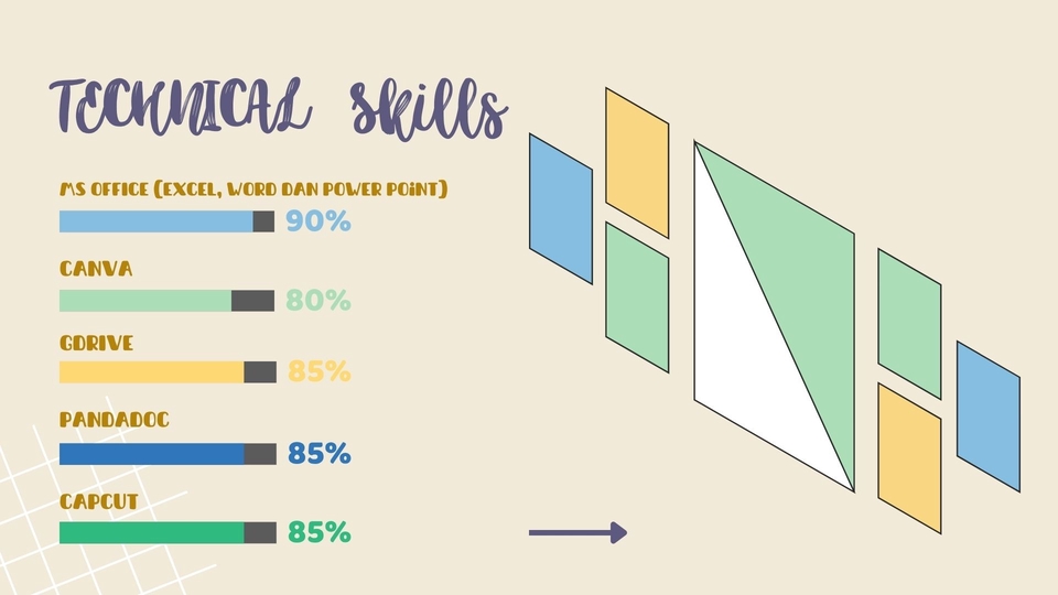 Memiliki pengalaman dalam melakukan editing video dan foto untuk keperluan konten digital, promosi produk dan dokumentasi event. Saya terbiasa menggunakan Capcut untuk proses editing video, seperti pemotongan, transisi, efek teks, musik latar, hingga substitle. Sedangkan untuk desain visual seperti poster, konten Instagram, slide presentasi, dan e-book, saya menggunakan Canva sebagai tools utama. Editing yang saya kerjakan biasanya berfokus pada kebutuhan promosi digital, konten edukasi, dan dokumentasi kegiatan organisasi atau proyek kerja.
