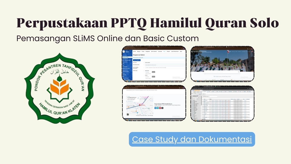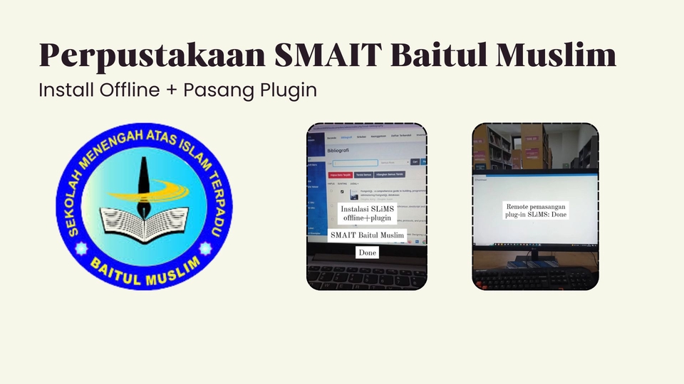 Merupakan aplikasi perpustakaan yang populer digunakan di Indonesia selain inslislte, dan digunakan pula di beberapa perpustakaan di dunia. SLiMS menawarkan fitur pengelolaan perpustakaan yang simpel dan mudah. Dengan aplikasi ini, pekerjaan dapat lebih mudah dan cepat selesai dibanding dilakukan secara manual. Langkah Pekerjaan 1. Berdiskusi dengan klien tentang Aplikasi dan Proses Pemasangan 2. Proses Pemasangan secara Online akan membutuhkan app pihak ketiga: team viewer 3. Kami akan memandu KLIEN, jika masih asing dengan aplikasi