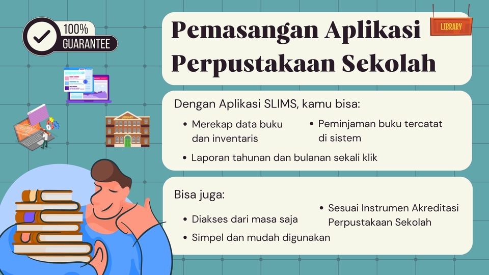 Rp450,0 rb- Paket Aplikasi SLiMS offline - Dokumentasi & e-book berisi tips and trik SLiMS - Pemasangan langsung oleh teknisi di laptop/PC klien - Free pemasangan 1 plugin tambahan - Garansi 1 Bulan