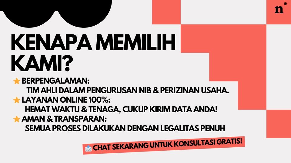 Butuh Legalitas untuk Bisnis Anda? Kami Solusinya! Legalitas adalah pondasi bisnis yang kokoh. Saya, Nanda Eka Chandra, dengan gelar Magister Kenotariatan dari Universitas Brawijaya (2018) dan pengalaman sejak 2016 sebagai Legal Consultant & Legal Drafter, siap membantu Anda. 📌 Spesialisasi Kami Telah membantu ratusan UMKM mendapatkan legalitas usaha dengan mudah, aman, dan terpercaya. Langkah Kerja Konsultasi Gratis: Pahami kebutuhan Anda dengan diskusi langsung. Pemenuhan Dokumen: Panduan untuk melengkapi syarat dengan cepat. Proses Cepat & Aman: Semua dokumen dikerjakan secara profesional. 🚀 Kenapa Memilih Kami? ✅ Berpengalaman sejak 2016 ✅ Fokus pada kebutuhan UMKM ✅ Harga transparan tanpa biaya tersembunyi ✅ Konsultasi mendalam sesuai kebutuhan Anda Jangan tunda lagi! Klik tombol "Pesan Sekarang" dan dapatkan solusi legalitas usaha yang Anda butuhkan. Langkah Pekerjaan 1. Konsultasi 2. Pemenuhan Kelengkapan Persyaratan 3. Proses Pengerjaan