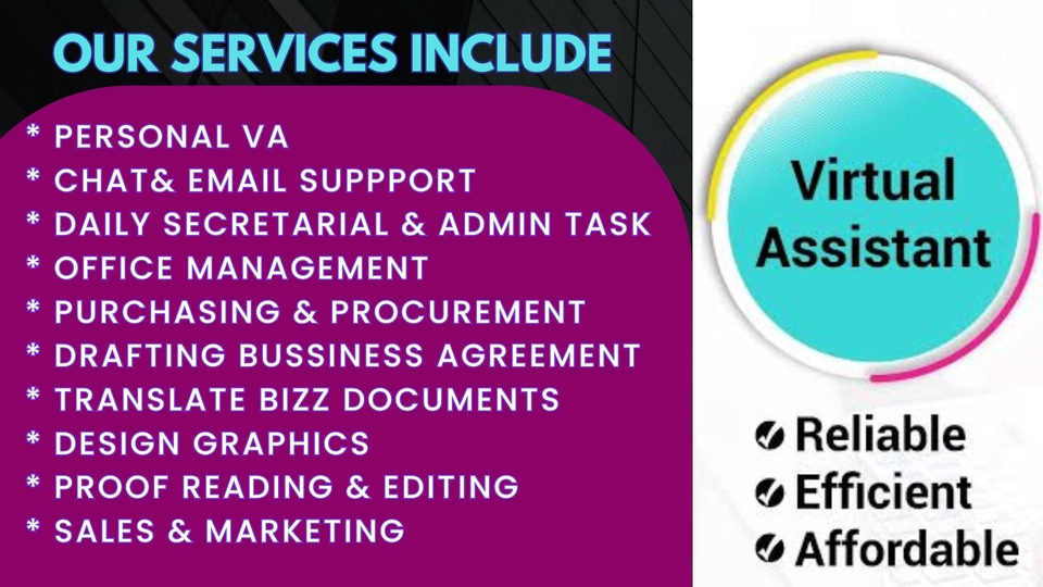 Kami Menyediakan Paket Harian, Mingguan & Bulanan Untuk Virtual Assistant . One Stop Solution untuk Pekerjaan bidang : #Administrasi &Secretarial Duties #Membantu Pekerjaan Bapak/Ibu sebagai Translator Dokumen Bisnis In English &Indonesian #Assisting You in Legal mater such Drafting berbagai Business agreement # Membantu Bapak /Ibu dalam hal Purchasing& procurement, #Membantu Bapak ibu dalam pengerjaan Design Graphic untuk alat bantu Promosi Perusahaan seperti Desain Logo, brosur,Kartu Nama, Banner, Presentasi Dll # Mengasistensi Job desk Customer Service,&Operation, #Mengasitensi dalam hal Marketing/Pemasaran Jenis Pekerjan yang diinginkan &Time Frame dapat dicustomize sesuai kebutuhan Client. HUBUNGI KAMI SEGERA UNTUK KONSULTASI &PEMESANAN ~TERIMA KASIH~ Langkah Pekerjaan 1. Chat dengan Kami& Konsultasi Detail kebutuhan 2. Pilih Paket & Negosisasikan harga dengan kami 3. Klien melakukan pembayaran 4. Kami akan mengerjakan sesuai Paket yang diambil &Harga yang disepakati di Invoice 5. Klien menerima hasil pengerjaan dan menganggap selesai, serta memberikan ulasan. Jika ada yang kurang dapat dimengerti bisa menghubungi saya langsung via chat ya. Terimakasih.