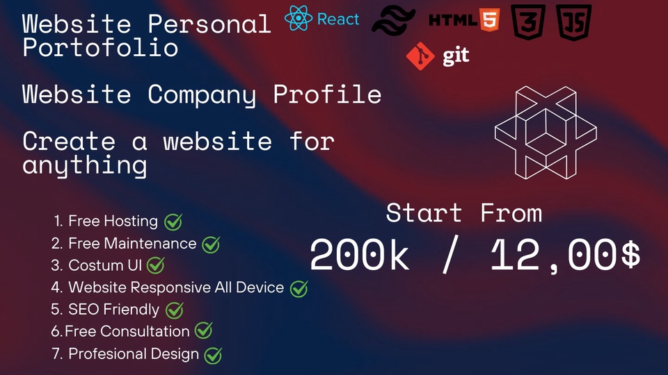 Personal Website, Company Profile, Costum Website | Start 200k / 12 Dollar