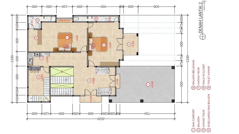 Desain Denah Rumah 2d Berwarna