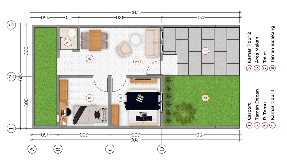 Desain Denah Rumah 3d Perspektif Berwarna