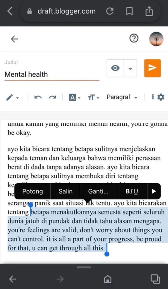 Halo, saya Nacil. Mahasiswi Akhir Teknik Sipil. Pada produk ini saya ingin menawarkan Jasa yang saya punya. someone who enjoys writing, is also a story writer. There are several stories that I have posted on my personal blogger. for jobs such as: - copy writer - ghost writer - creative writer - article blogger You can contact me, I can work under pressure and of course finish within the specified time period. thank you, hope it helps. Langkah Pekerjaan 1. SLOW 2. FAST