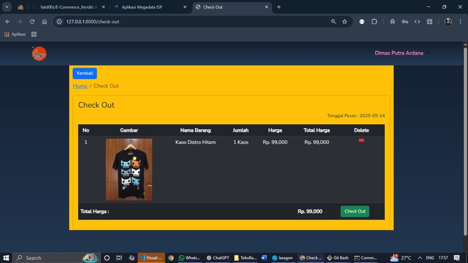 ChatGPT Anda bilang: Buatkan deskripsi tentang website ecommerce web Development seperti portofolio saya menguasai bahasa pemrograman laravel php buatkan dalam 150 kata ChatGPT bilang: Berikut deskripsi singkat untuk portofolio Anda: Saya adalah web developer dengan spesialisasi dalam pengembangan website e-commerce berbasis Laravel PHP. Berpengalaman membangun platform toko online yang responsif, aman, dan mudah digunakan, saya menguasai konsep MVC, RESTful API, dan integrasi payment gateway. Saya juga terbiasa mengelola backend dengan efisien, termasuk autentikasi pengguna, manajemen produk, keranjang belanja, dan sistem checkout otomatis. Dengan Laravel, saya mengoptimalkan performa aplikasi menggunakan fitur seperti Eloquent ORM, middleware, dan queue jobs. Fokus utama saya adalah memberikan solusi yang scalable dan user-friendly, yang tidak hanya menarik secara visual tetapi juga kuat secara fungsional. Saya percaya bahwa pengalaman pengguna yang baik dimulai dari kodingan yang bersih dan terstruktur. Komitmen saya adalah memberikan hasil kerja terbaik sesuai kebutuhan klien. Langkah Pekerjaan 1. Membuat rancangan dengan use case atau diagram class 2. Install package yg di butuhkan seperti laravel, auth laravel, node js,
