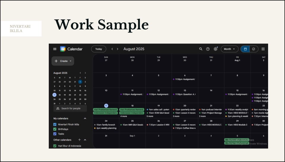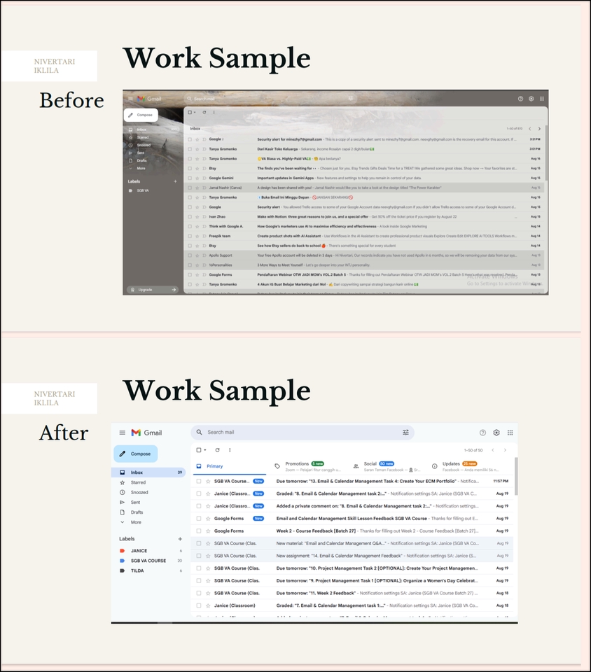 Hai my name is Nivertari, and I am a Virtual Assistant. Helping bussiness owner to handle their social media and also change the engagement into revenue.