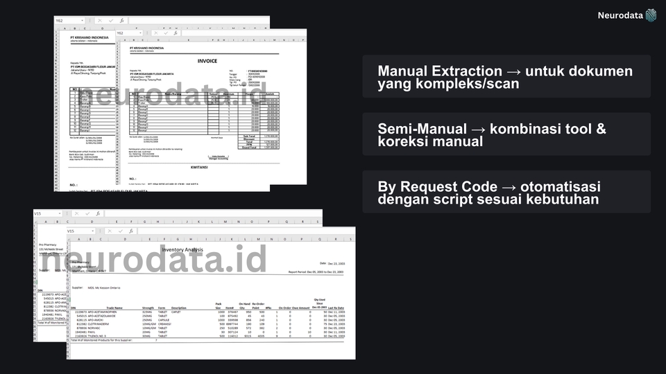 Kami menyediakan layanan yang berfokus pada data extraction dan web scraping. Kami membantu individu, bisnis, hingga startup untuk mengumpulkan data dari berbagai platform online secara efisien, akurat, dan terstruktur. Dengan pengalaman dalam mengolah data dari pdf, media sosial, marketplace, hingga aplikasi. Dengan prinsip profesionalitas dan kode etik yang jelas