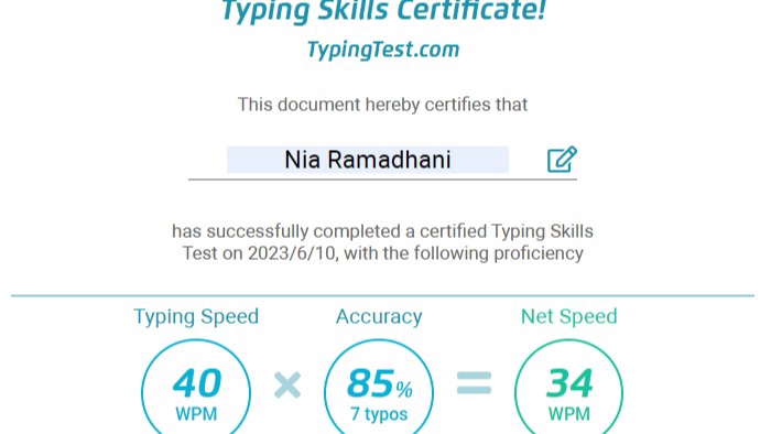 Perkenalkan saya nia lulusan ilmu administrasi publik, dan sekolah kejuruan administrasi perkantoran. sebagai alumni jurusan administrasi perkantoran, saya dituntut untuk memiliki skill typing master atau mengetik cepat. kemampuan pengetikan cepat dengan metode mengetik sepuluh jari telah saya kuasai sejak lama, hingga saat ini terus saya aplikasikan untuk menunjang kinerja saya. oleh karena itu kemampuan itu ingin saya komersilkan untuk anda yang ingin menggunakan jasa pengetikan saya. sehingga memberi kemudahan bagi pekerjaan anda. saya menunggu kerjasama dengan anda. Terimakasih. Langkah Pekerjaan 1. Chat, Nego, Sepakat 2. Serah hasil, Revisi, Selesai