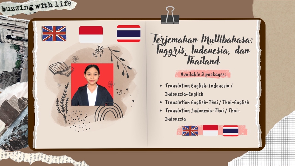 Rp200,0 rbTranslation Package: Indonesia - Thai / Thai - Indonesia 1. Document Translation: Academic, business, personal & articles. 2. Proofreading & Editing: Grammar, spelling, punctuation, and context adjustments. 3. Creative Translation: Ads, social media, and marketing content. 4. Custom Request: Format adjustments, fast service, or special needs. 5. Benefits: High accuracy, manual translation, confidentiality guaranteed, flexible service.