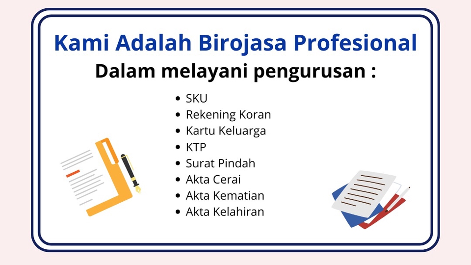 Saya, panji nugraha menawarkan anda jasa edit dokumen, adapun dokumen yang Anda perlukan atau yang ingin di edit saya bisa membantu hal tersebut dengan mengutamakan keinginan anda, Terima kasih, saya harap saya bisa bekerja sama dengan anda. Langkah Pekerjaan 1. menghubungi kontak saya 2. sebutkan keinginan anda yang anda butuhkan 3. tunggu waktu proses 4. dalam 1 hari dokumen anda sudah siap