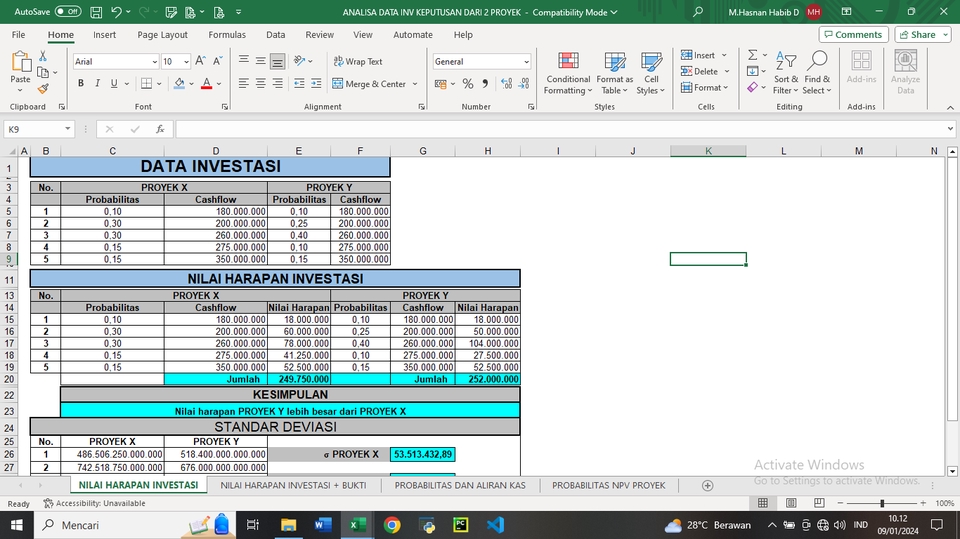 Saya adalah seorang Financial Expert dan Financial Analyst dengan pengalaman berkualitas di bidang keuangan. Saya memiliki pengalaman 7 tahun 3 bulan sebagai Analis Kredit (AMGR/ ASSISTANT MANAGER) di BANK NEGARA INDONESIA dan 4 tahun 11 bulan sebagai Senior project Financial Analyst dan financial manager di PT. MEDAN MONORAIL INDONESIA. Kemampuan saya dalam manajemen, keuangan, menganalisis data dan membuat keputusan finansial membuat saya siap untuk memberi kontribusi positif bagi klien saya. Keahlian saya tidak hanya terbatas pada keuangan, tetapi juga mencakup strategi pemasaran, desain, dan penulisan kreatif. Langkah Pekerjaan 1. Perkenalan, inisiasi bisnis, diskusi dan identifikasi permasalahan serta kebutuhan bisnis, 2. Kesepakatan pekerjaan 3. Pengumpulan data 4. Pelaksanaan pekerjaan serta komunikasi dan konsultasi selama waktu pekerjaan (30 hari) 5. Serah terima hasil pekerjaan dan feedback dari klien. 6. jika diperlukan langkah kerja dapat menyesuaikan dengan kondisi pekerjaan