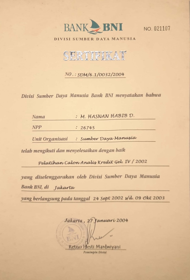 Saya memiliki keahlian dan pengalaman dibidang keuangan,bisnis dan analisa nya, 7 tahun 3 bulan bekerja di BNI sebagai analis kredit, 4 tahun 11 bulan sebagai financial analyst di PT. MEDAN MONORAIL INDONESIA