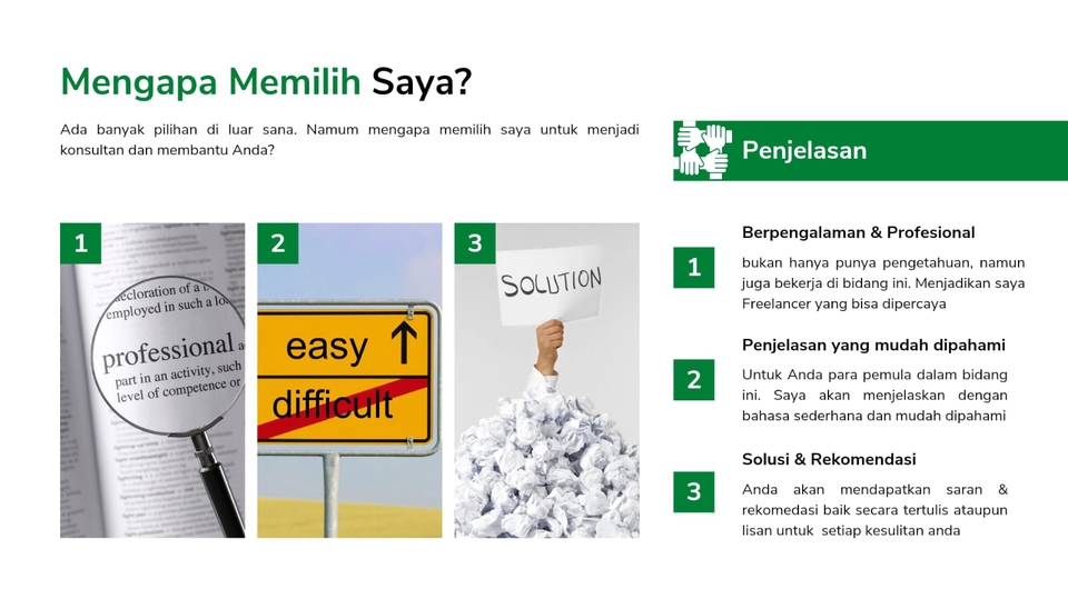 Saya memiliki pengetahuan dan pengalaman langsung di bidang Human Resource, Quality Management (QM) dan Document Controller (DC). Saya akan membantu anda yang ingin: - Konsultasi mengenai Bidang HR, - Persiapan hingga Penerapan ISO 9001 dan 45001 dalam ruang lingkup Bisnis, - Pembuatan Standar Operasional Prosedur, Job Description Pegawai, & Formulir Operasional - dan hal lainnya yang terkait