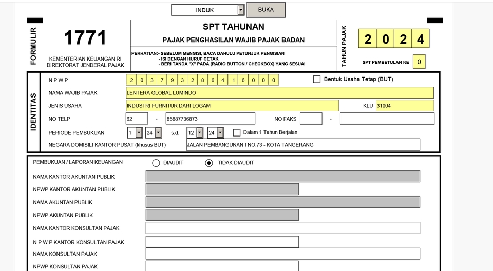 Jasa Laporan Keuangan dan Perpajakan Badan/Perorangan