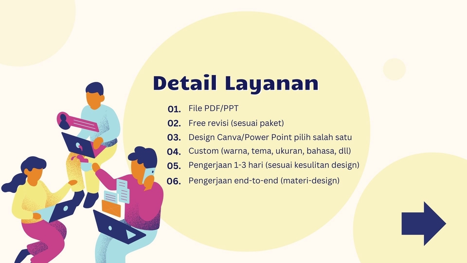 Rp300,0 rb- Unlimited slide - File PDF/PPT - Free revisi (unlimited) - Pengerjaan end-to-end (materi-design) - Design Canva/Power Point pilih salah satu - Custom (warna, tema, ukuran, bahasa, dll) - Pengerjaan 1-3 hari (sesuai kesulitan design)