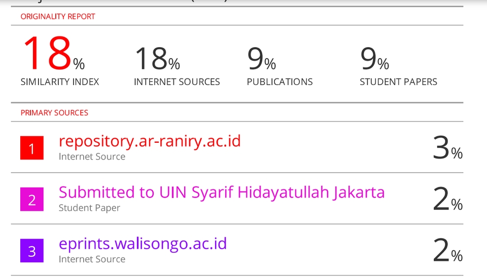 Turnitin merupakan aplikasi persamaan teks yang dapat membandingkan orisinalitas karya tulis dengan berbagai sumber karya tulis yang ada di internet, seperti karya tulis artikel, jurnal, buku, dll. Pengecekan plagiarisme melalui turn.it.in. File akan dikirim berbentuk pdf. Lama pengecekan terantung banyaknya dokumen yang klien berikan. Langkah Pekerjaan 1. Pengiriman dokumen 2. Proses pengecekan dokumen 3. Pengiriman Hasil pengecekan kepada client