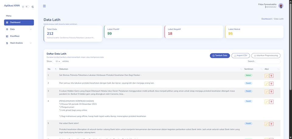 Aplikasi Analisis Sentimen K-NN (K-Nearest Neighbors)