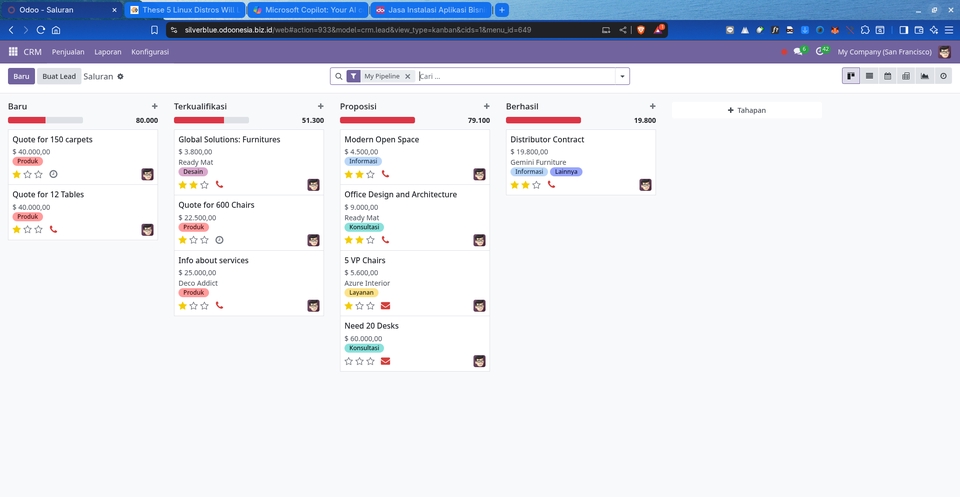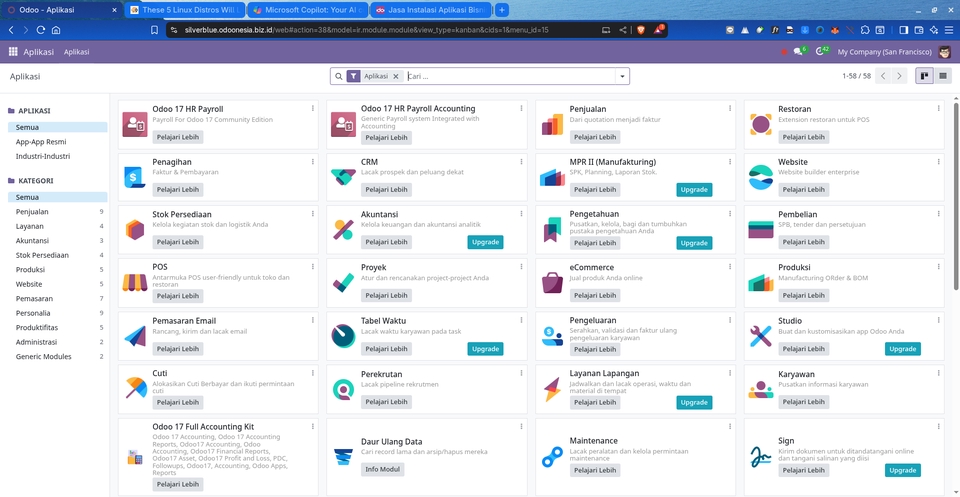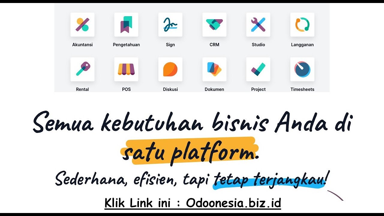 Jasa Instalasi Aplikasi Bisnis Terlengkap untuk UMKM – Odoo by Odoonesia Sudah termasuk aplikasi Odoo nya gratis dengan modul Kasir POS, Penjualan, Pembelian, Stok Persediaan Inventory, HRD, Manufaktur, Proyek, CRM, eLearning, Penagihan Akuntansi, dll Membesarkan Bisnis UMKM Anda agar Naik Kelas