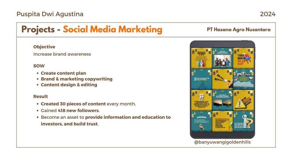 Halo, aku Puspita! Berpengalaman dalam hal pemasaran digital selama 2 tahun untuk personal maupun bisnis. Fokus pada social media strategy, content plan, copywriting, creative ads, dan Facebook/Instagram ads. Let's collaborate!