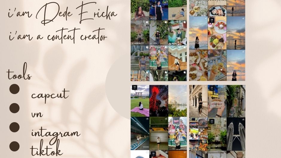 Kreator konten aktif di TikTok dan Instagram, berfokus pada lifestyle, vlog, makeup, dan konten informatif. Terampil menggunakan CapCut, dan aplikasi editing lainnya untuk menghasilkan konten berkualitas dan sesuai tren.