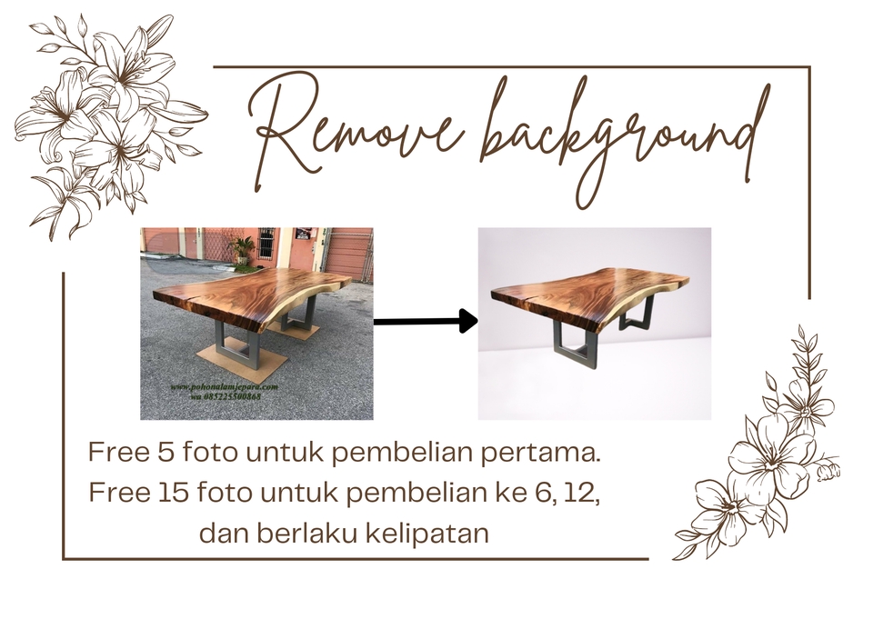 Jasa remove dan edit background untuk marketplace Detail : -remove background - change color background - file dapat berupa jpg/png Terimakasih banyak. Saya harap anda dapat memberikan kesempatan untuk dapat bekerjasama dengan anda 🙏 Langkah Pekerjaan 1. Diskusi terkait desain background yang diinginkan 2. Pilih paket yang disediakan melalui chat 3. Transaksi 4. Mulai bekerja 5. Mengirimkan file foto