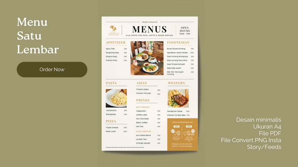 Rp500,0 rb• Maksimal 7 halaman • File PDF High Resolution • File Menu Digital • File Menu Versi Instagram Story / Feeds • Revisi 3 kali